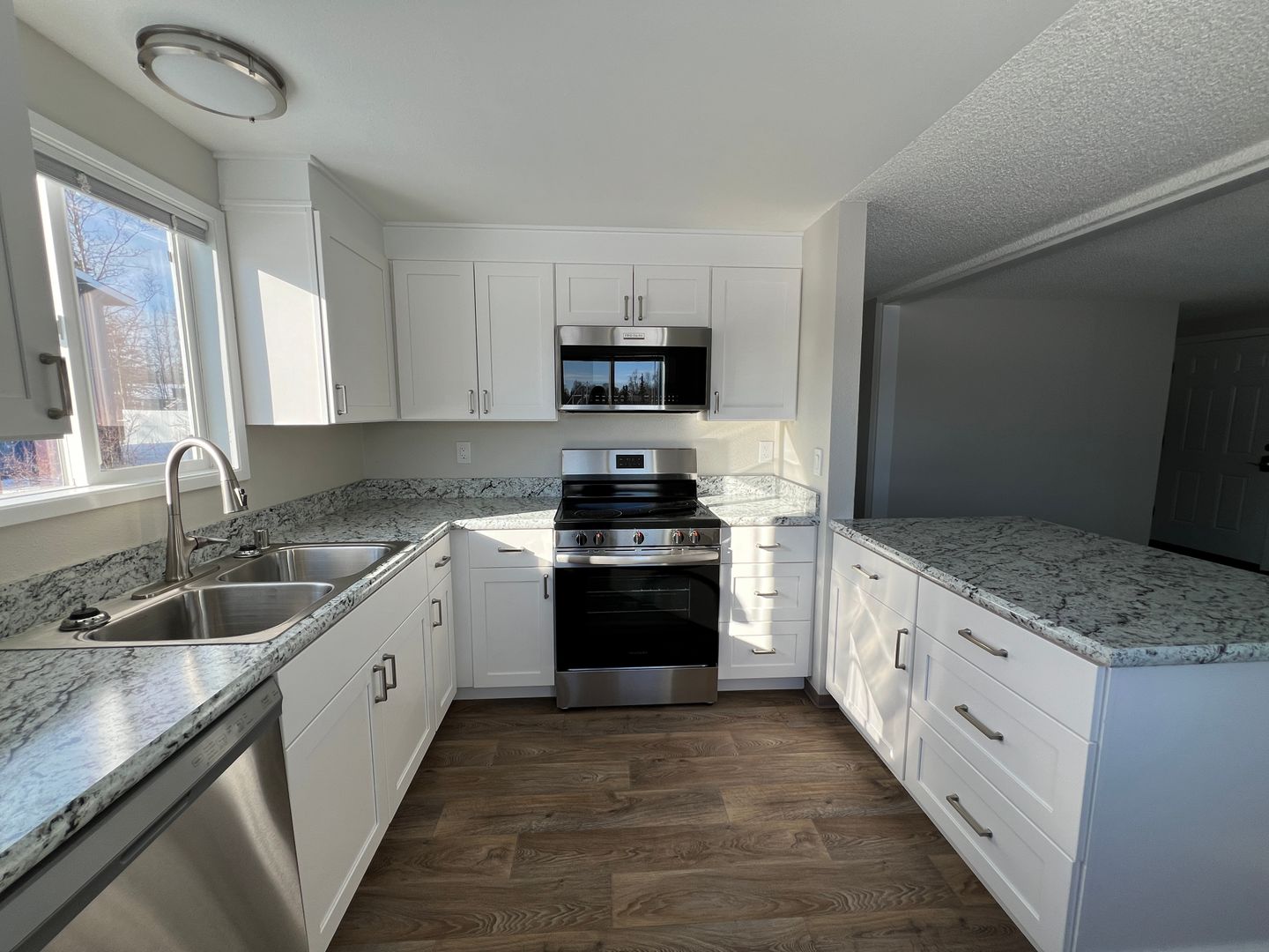 2 Bed 1 Bath ground level 4plex unit conveniently located in Kenai within walking distance to beach access off Forest Dr and a great city park just across the street. This newly remodeled unit features stainless appliances, a washer and dryer in the unit, covered parking, and a storage unit. The owner covers trash service, landscaping, and snow removal. No pets and no smoking of any kind. The rental rate is $1,425 a month + $30 tax, and the tenant is responsible for gas, electricity, and other utilities such as internet. Available now, 12-month lease required.